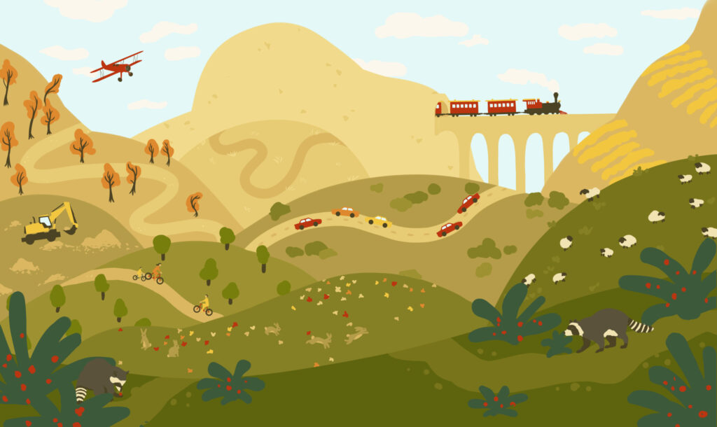 This page shows a selection of mural designs made for past projects. They were created with specific shaped walls in mind, often using a limited color palette and a flat, graphic style to paint in. Each design was made to work at a large scale, but they still read well as a digital images.